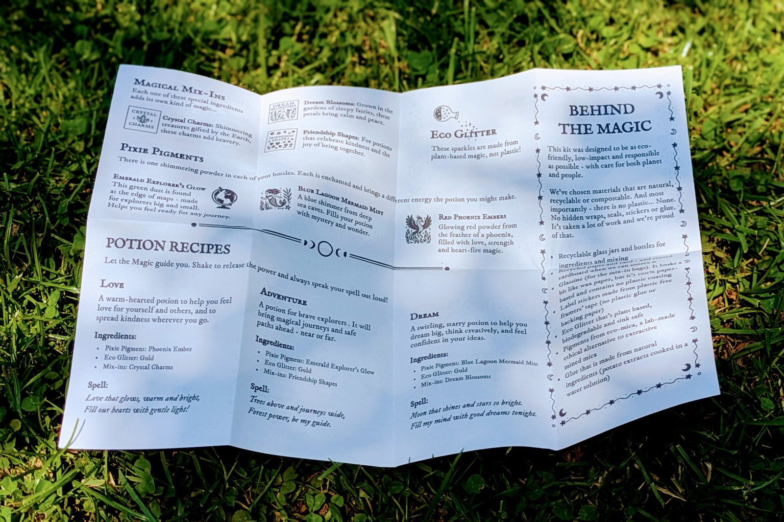 A spellbinding potion kit designed for a class friend’s birthday gift or small surprises. Plastic-free, imagination-full, and ready to spark magical play.